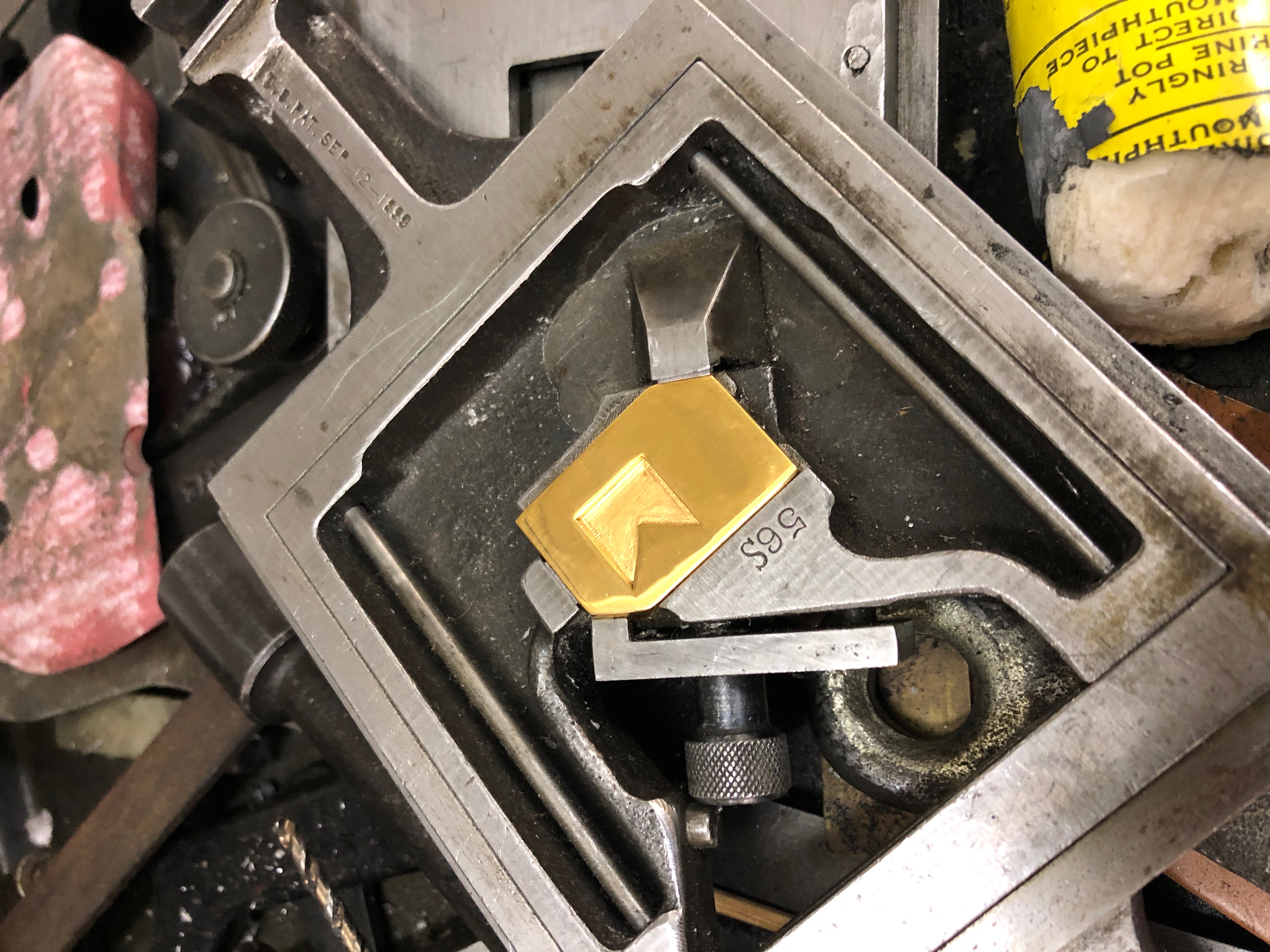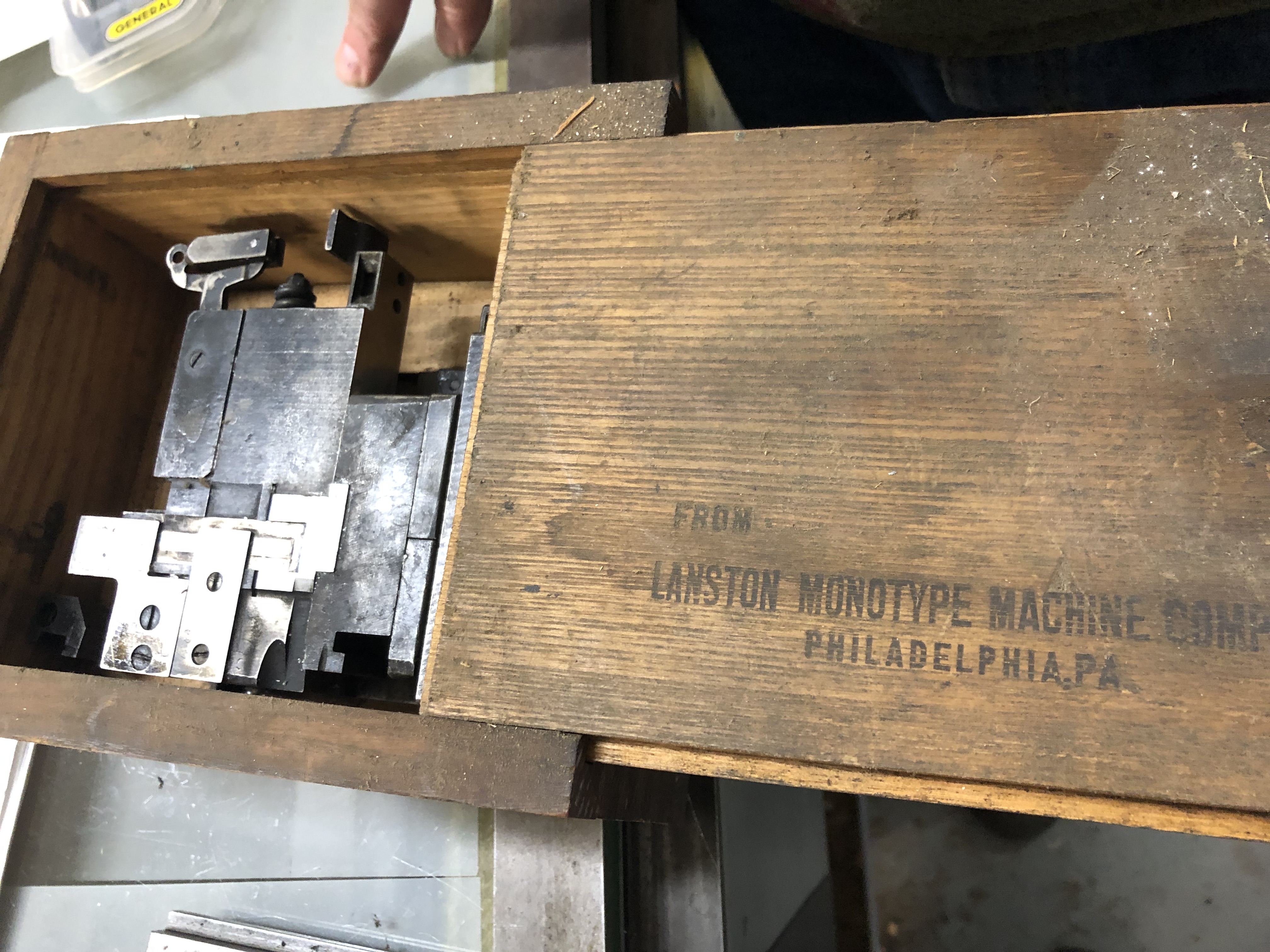 Led by Steve Bowden, and made possible with the expertise of Peter Evonuk and David Wolfe of Wolfe Editions in Portland, Maine, we developed a set of lead type made from the five units of the grid. Peter made brass matrices and cast the lead type.