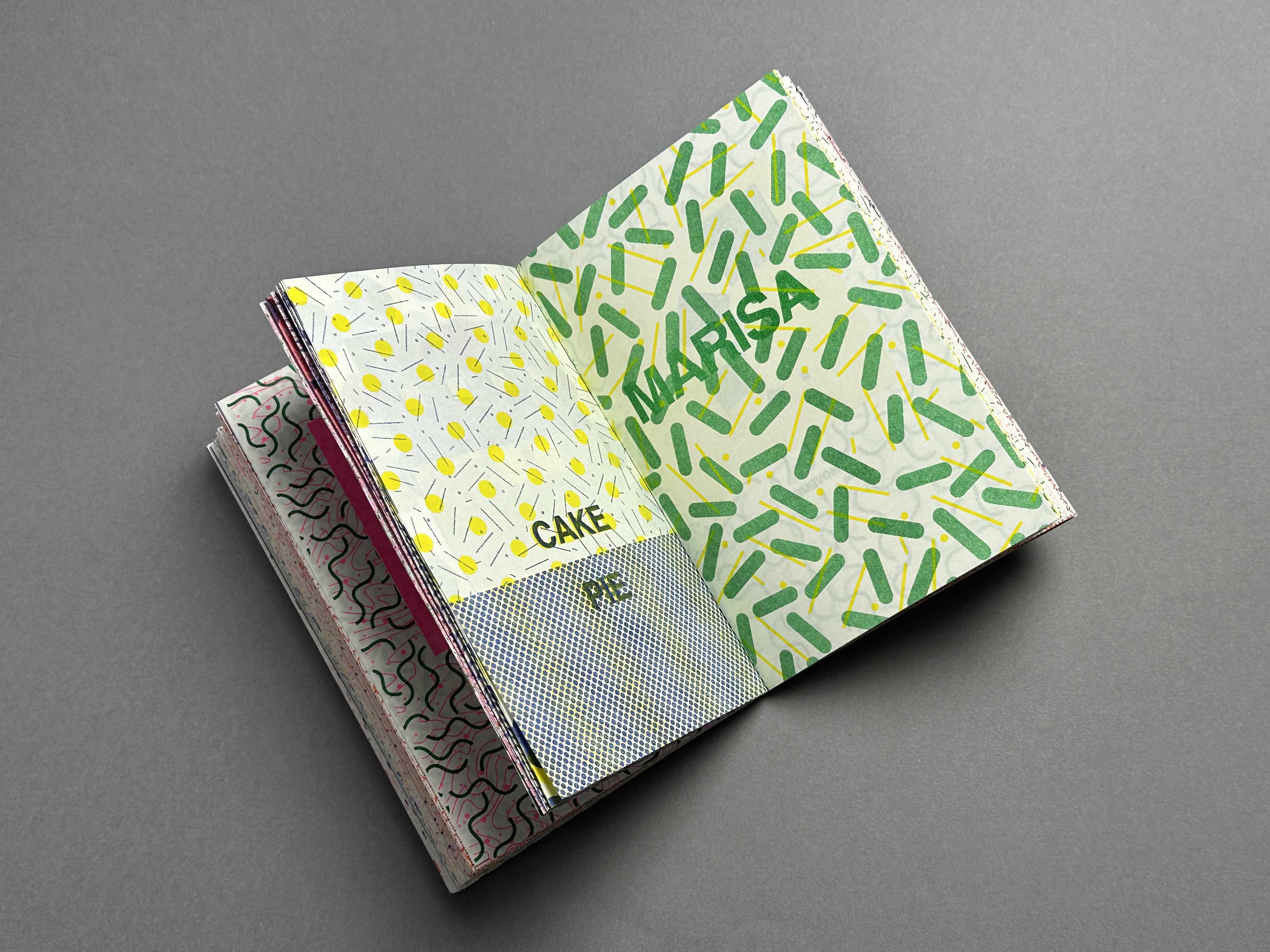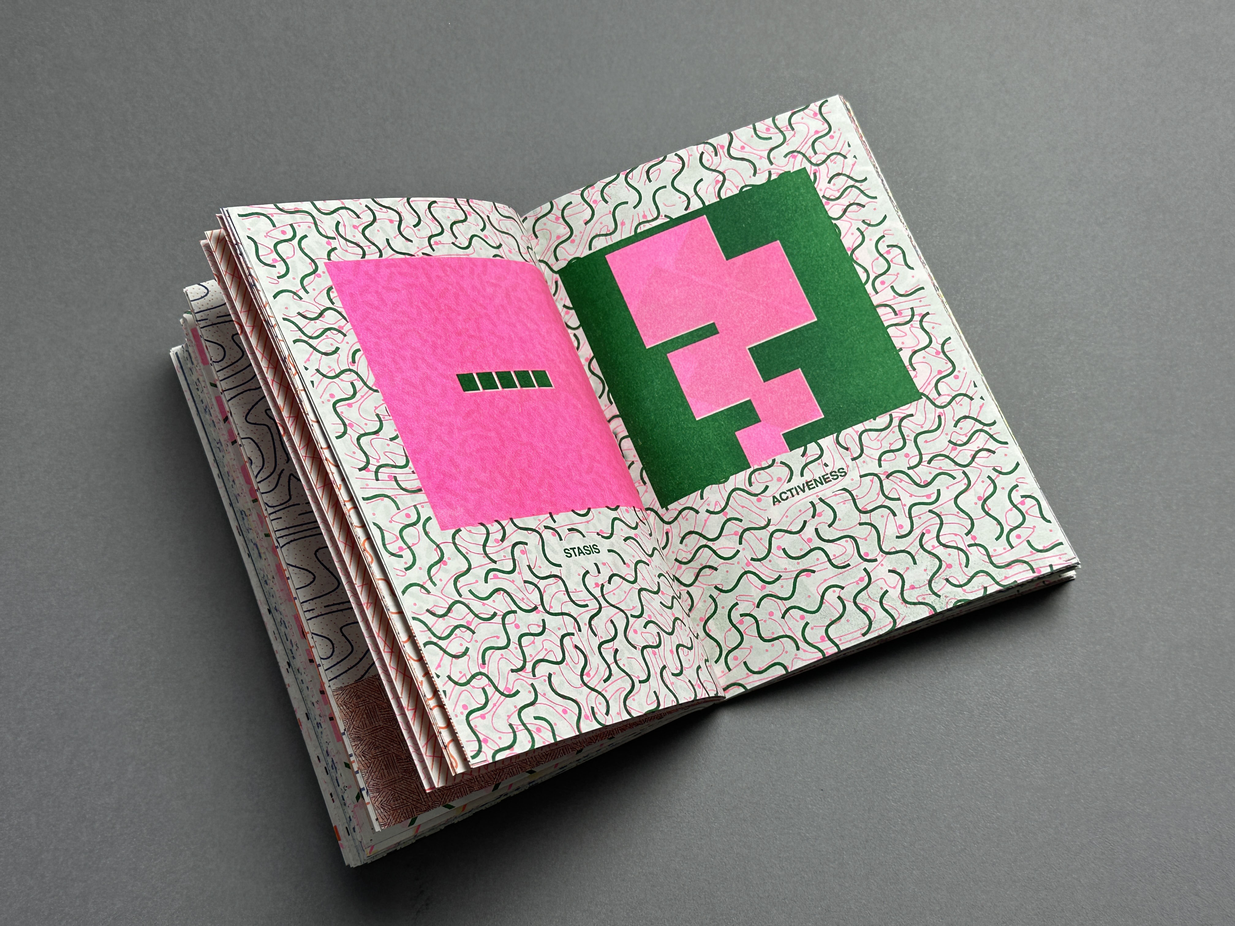Pairs is a brief that coalesces a study of basic formal composition into a collection of Risograph printed outcomes. All students in the course complete a survey of multiple preferences — chocolate or vanila; early bird or night owl; pancakes or waffles, and so on. The resulting data is collected and each student combines their compositions with their chosen data graphic and all the pieces are bound into a communcal volume.